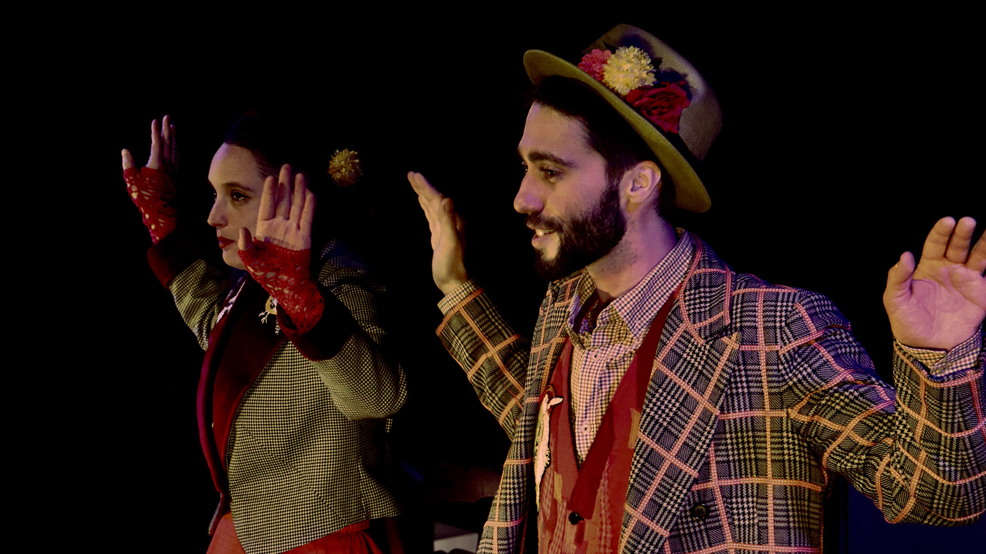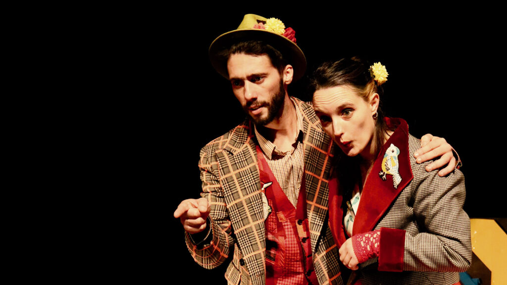 D’idées folles en idées saugrenues, le frère et la sœur tourbillonnent dans l’univers du poète, en musique, en voix, en acrobaties…